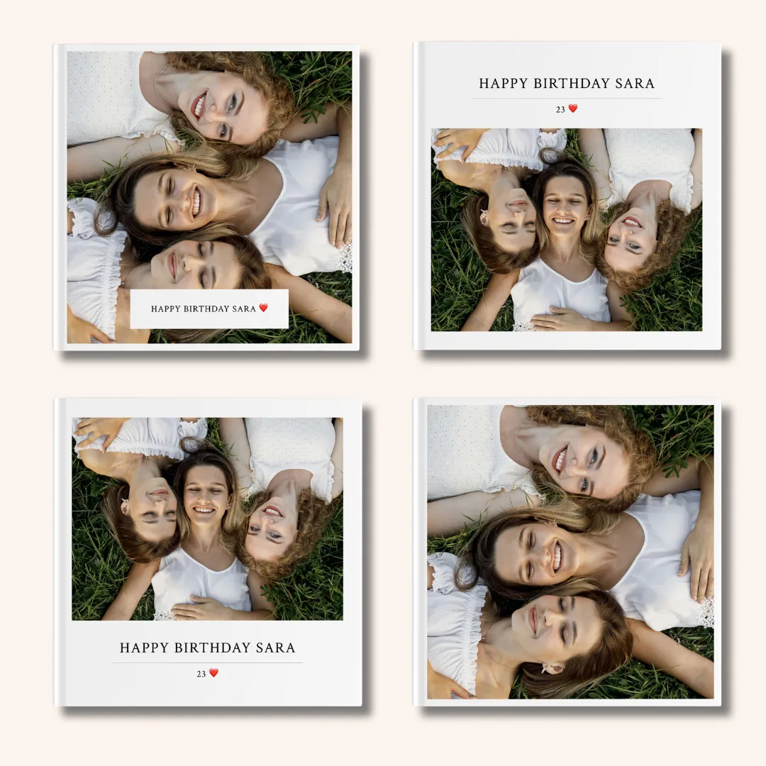 ¿Buscas una idea original para un regalo de cumpleaños? Nuestro popular álbum de fotos de cumpleaños ofrece una calidad de impresión de primera y 23 plantillas de páginas fáciles de usar. Convierte tus momentos más especiales en un álbum de fotos profesional con colores vivos y un diseño elegante que hará que cada cumpleaños sea inolvidable.