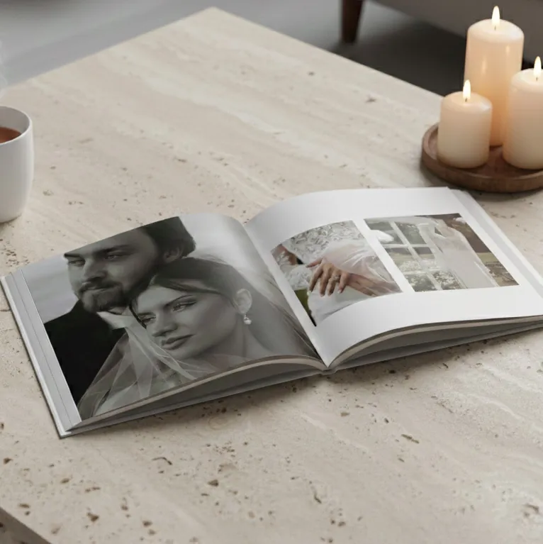 Convierte tus fotos de boda favoritas en un impresionante álbum de fotos personalizado en cuestión de minutos. Nuestras 22 plantillas de páginas personalizadas están diseñadas para ayudar a las parejas a crear rápidamente un álbum de fotos de boda elegante y de alta calidad. Revive tu ceremonia y recepción con colores vibrantes y un acabado clásico y profesional.